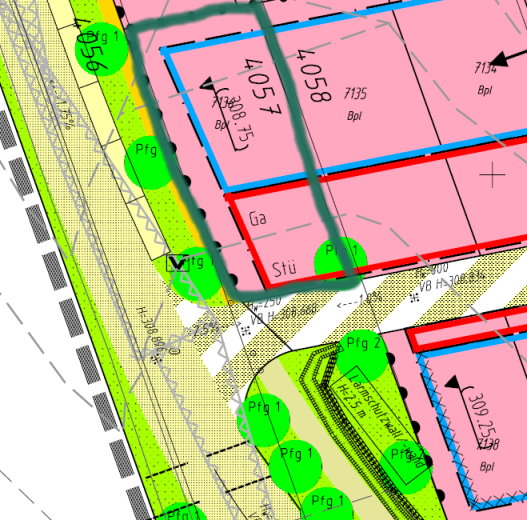 Nach langem Suchen haben wir endlich unser Wunschgrundstück gefunden. Süd- und Westseite unverbaubare Lage (4057). Alle Seitenstrasssen (Südseite) sind Sackgassen und Spielstrassen. Die Hauptstrasse des Wohngebiets (Westseite) ist 30er Zone.