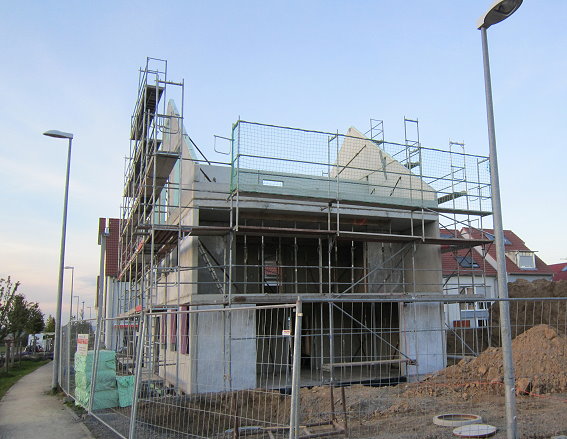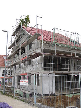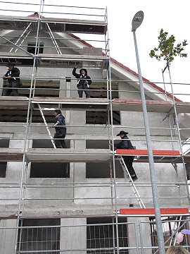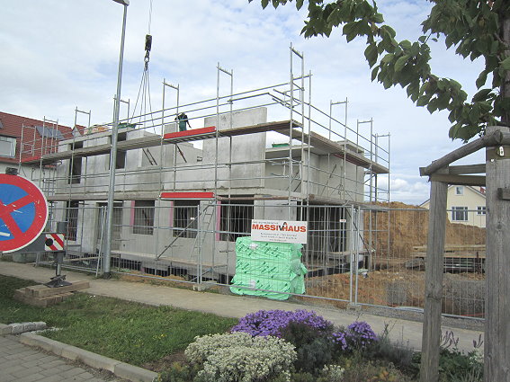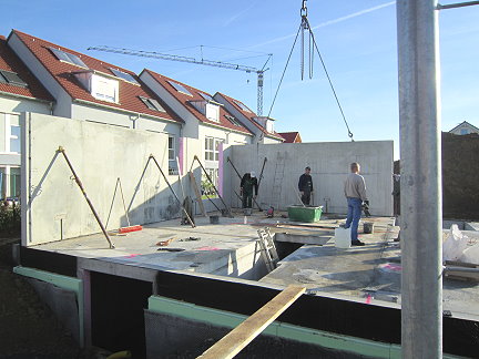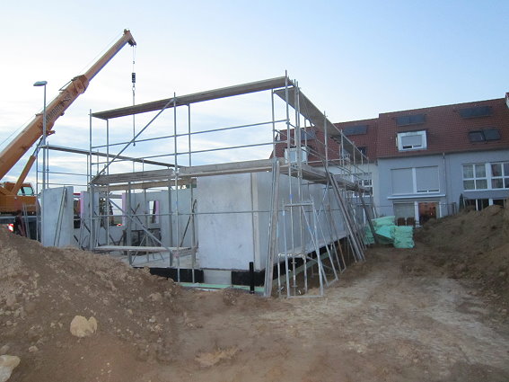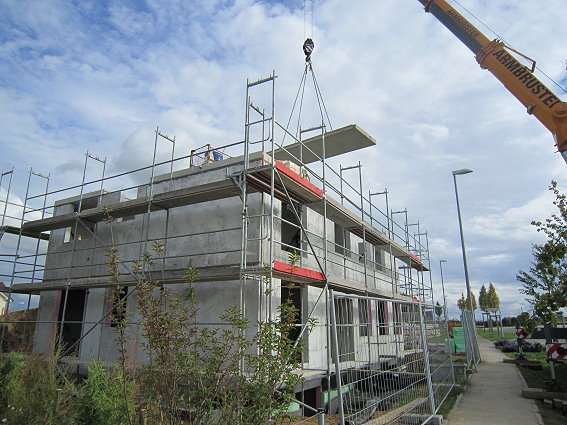Das Haus wird aufgestellt 1. Tag - Erdgeschoß 04.10.2010 - 15.00 Uhr das EG steht 18.00 Uhr